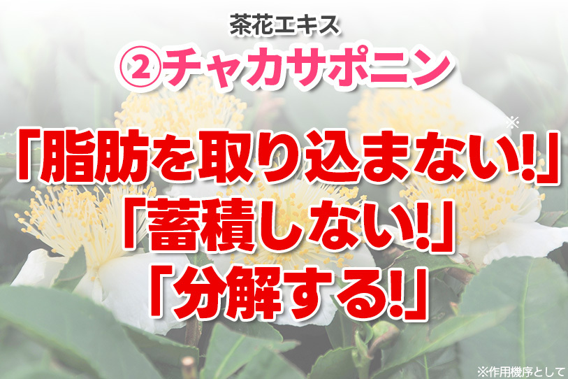※チャカサポニン・ ブラックジンジャー由来ポリメトキシフラボン・バナバ葉由来コロソリン酸・有胞子性乳酸菌を機能性関与成分とし、機能性表示食品の処方として日本初処方