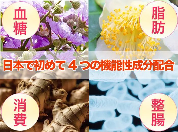 ※チャカサポニン・ブラックジンジャー由来ポリメトシキフラボン・バナバ葉由来コロソリン酸・有胞子性乳酸菌を関与成分とした機能性表示食品の処方は日本で初めて